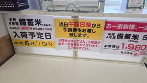 令和4年度産の古古米で、朝8時から引換券が配布されるとのこと。